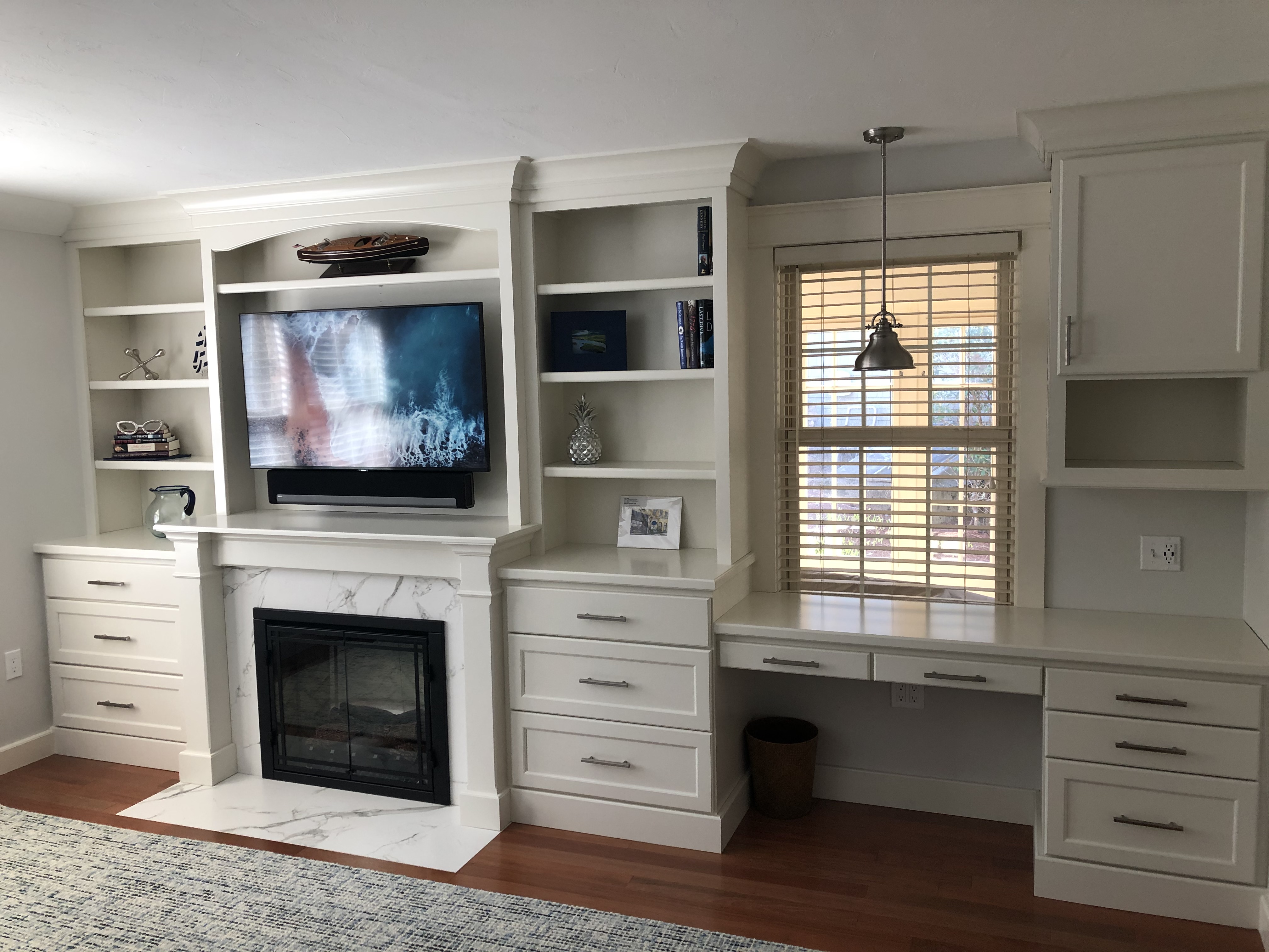 "Susan and I want you to know how much we appreciate the hard work and expertise you both brought to our project. The result is outstanding. Our requirements were somewhat unique- building a room that functions as a den, a bedroom, and an office without looking like the three components were jammed together. Incorporating a Murphy bed and an electric fireplace added to the challenge. Not only does the room meet our functional requirements, it looks stunning."